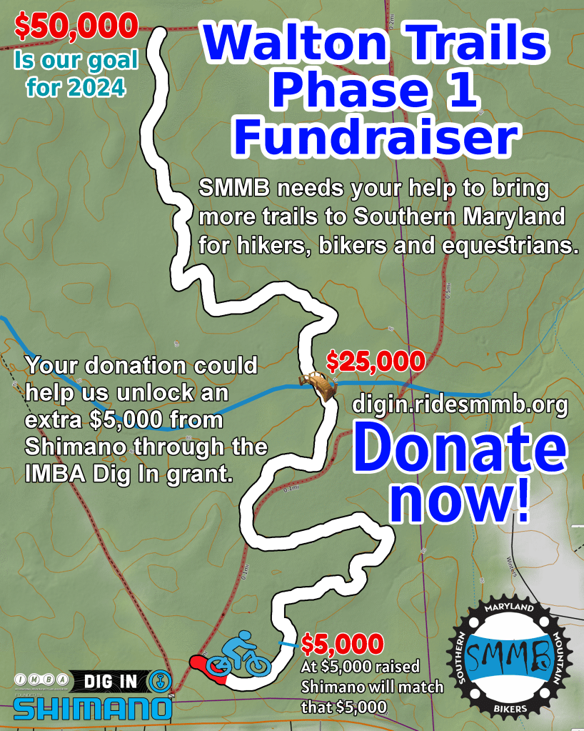 Please consider donating to SMMB through Dig In grant. Together we can get more trails in Southern Maryland.